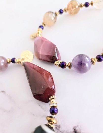 深い赤のものは 敢えて天珠を前に